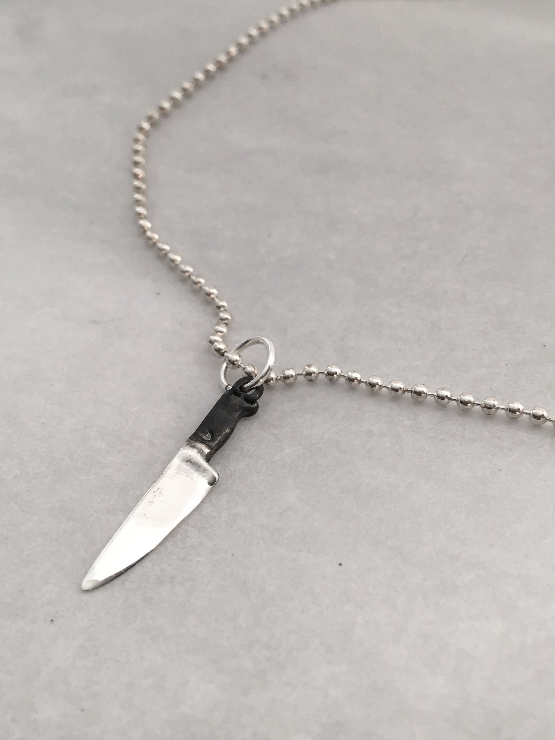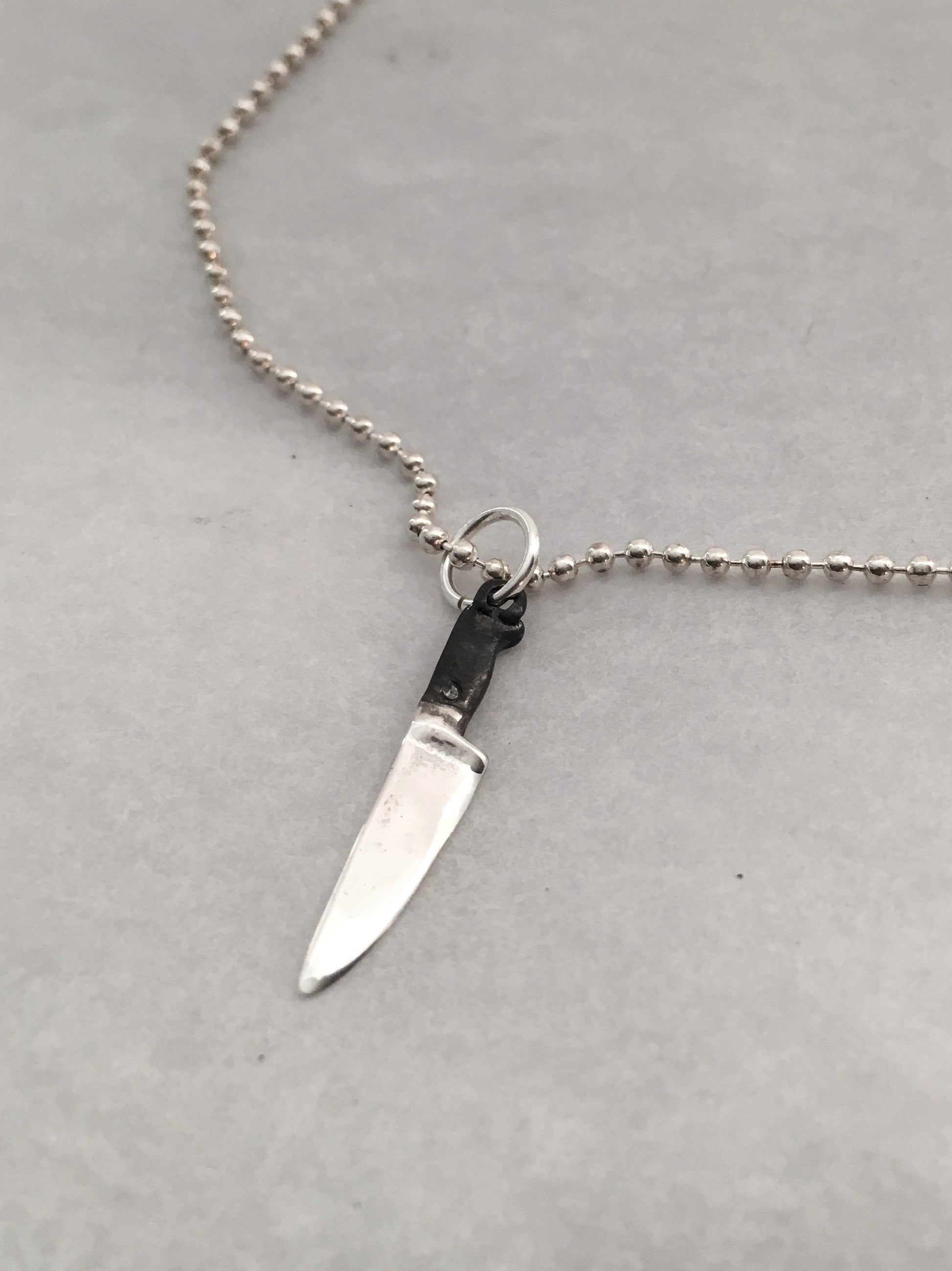 Sterling Chef Knife Pendant Necklace with Black Handle and Bead Chain