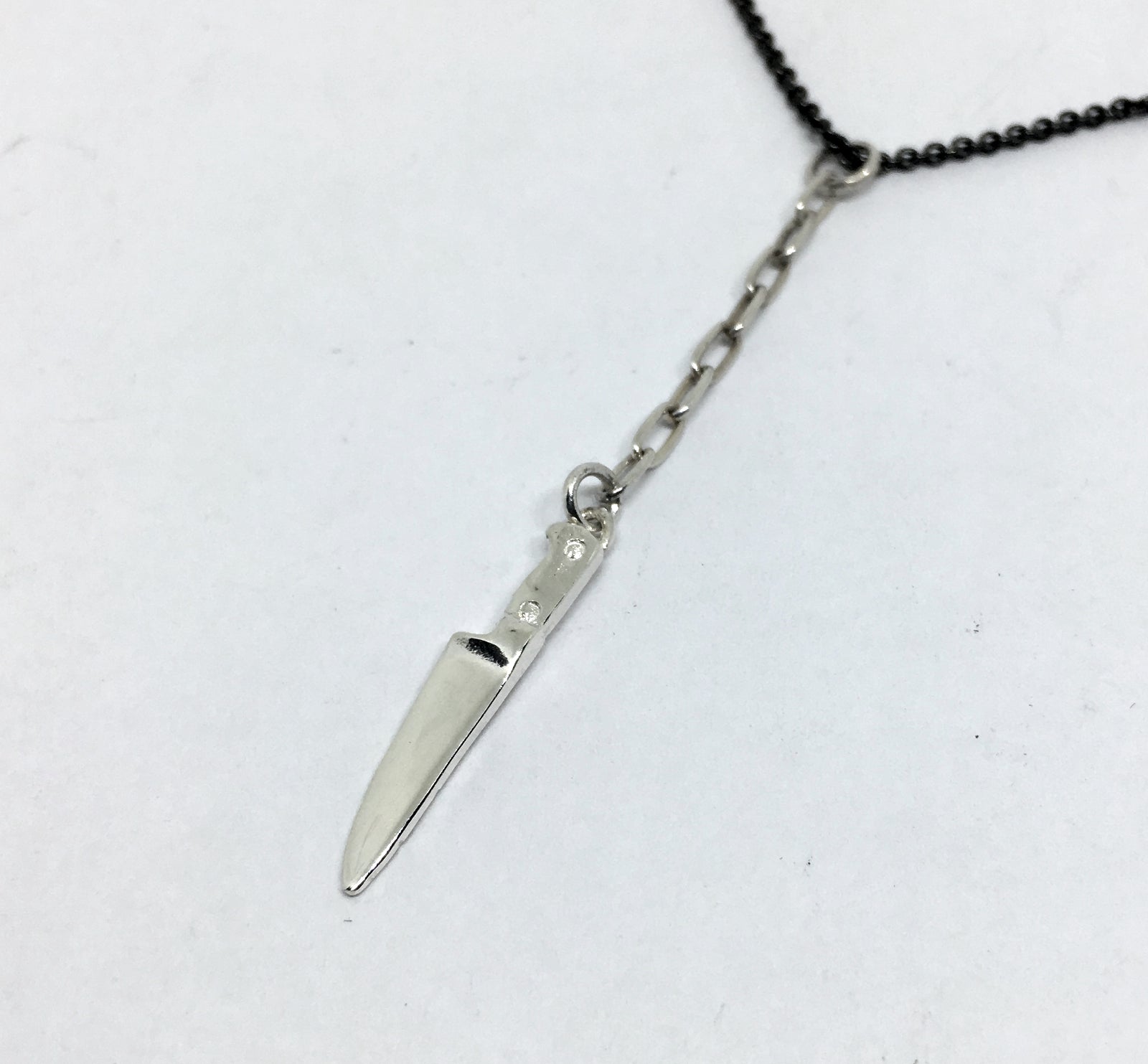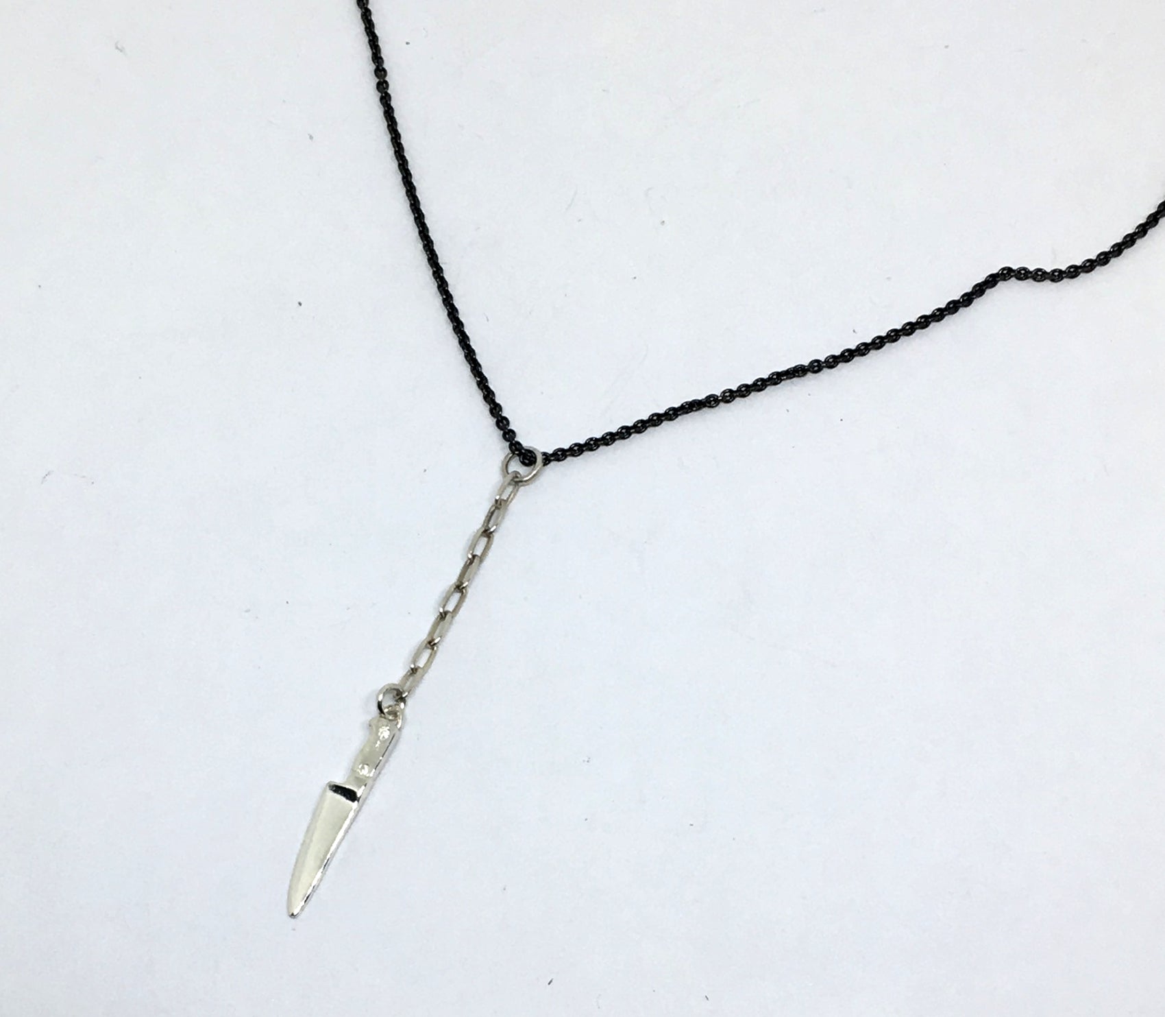 Black Sterling Silver Chef Knife Y Necklace